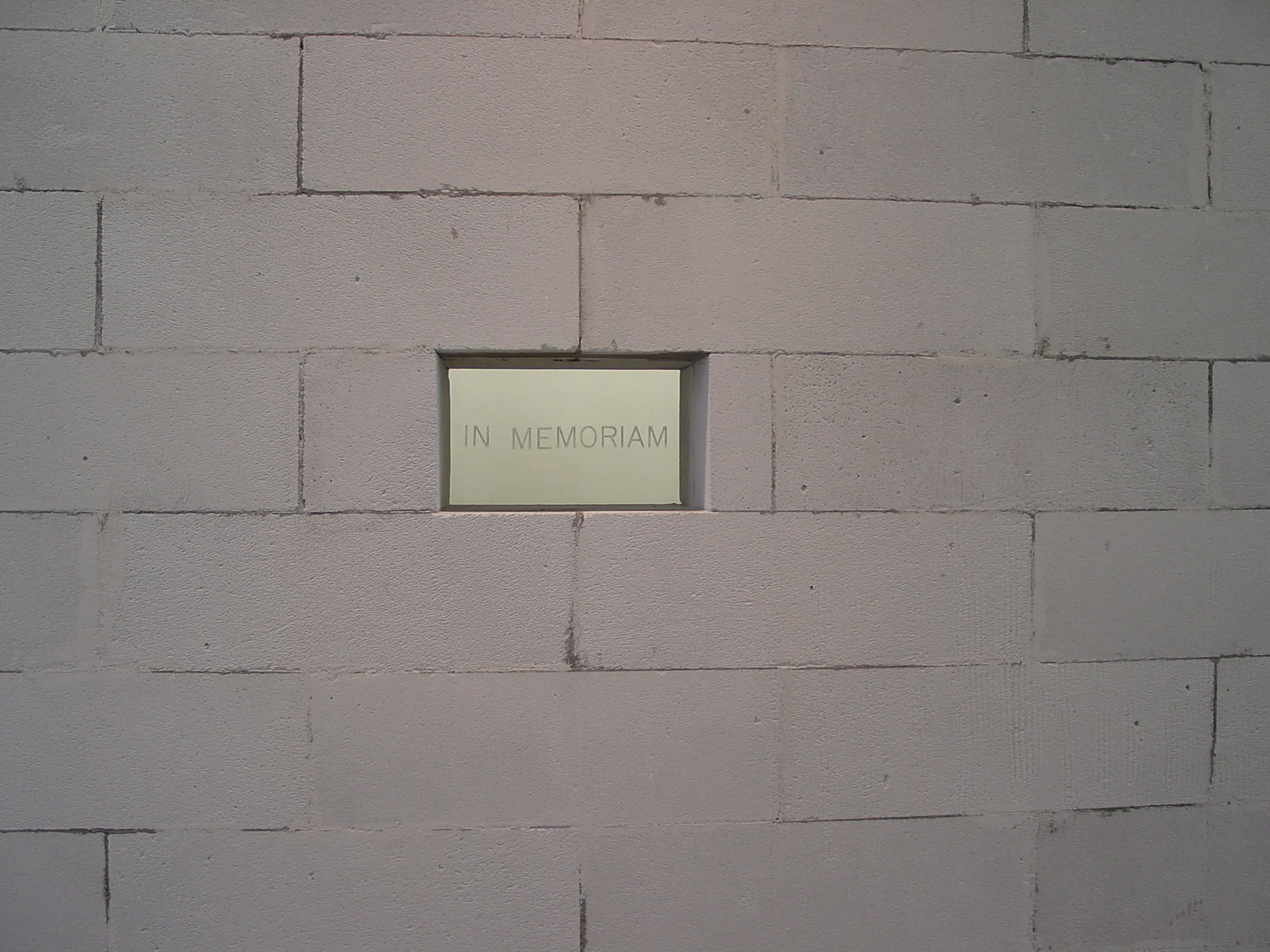 OBITUARIO fue una instalación que concebimos para sala del primer piso de la galería Animal en Santiago. Constituida por un murode hormigón celular de 11,80 metros de largo por 4 metros de alto, ubicado a 9,05 metros de la pared del fondo de la sala, su emplazamiento clausuraba el espacio de exhibición al impedir el acceso a su interior, estableciendo un nuevo límite. En su centro, al nivel de la mirada, perforamos el muro y lo sellamos con una lápida transparente que llevaba la inscripción "IN MEMORIAM". De tal manera, el muro anunciaba su muerte en un espacio ya ausente de sí mismo, a la vez que condicionaba la mirada hacia el interior de la sala, ahora inhabitable y vacía también dentro de sus propios límites. Reiteramos el concepto de la galería como un contenedor de la memoria, instalada como presencia objetual en su mausoleo.